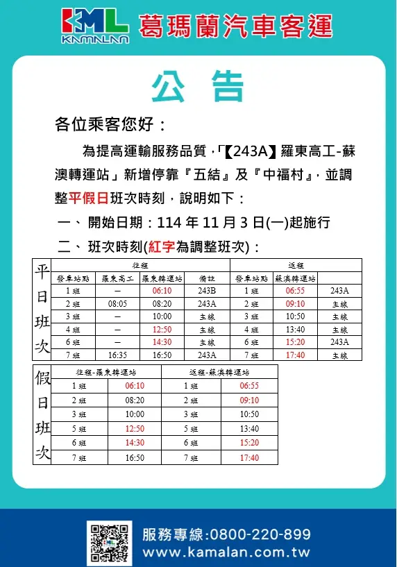 宜蘭勁好行 243 羅東轉運站-蘇澳轉運站