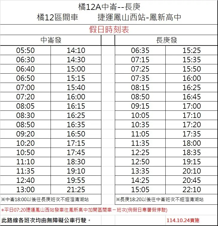 高雄市公車 橘12A 中崙-長庚醫院
