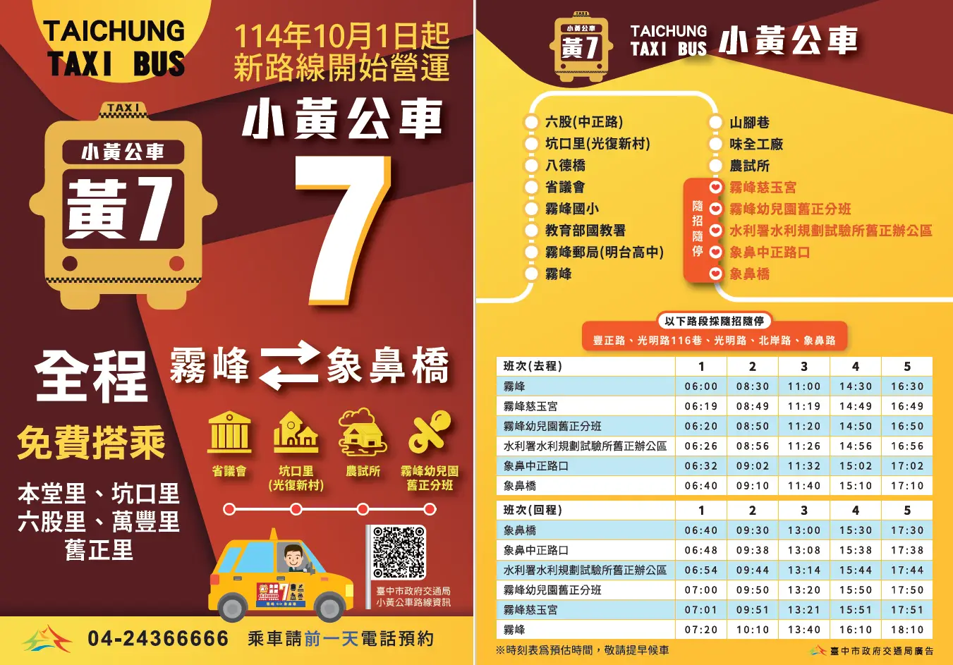 每日 霧峰 11:30 班次調整為 11:00 發車