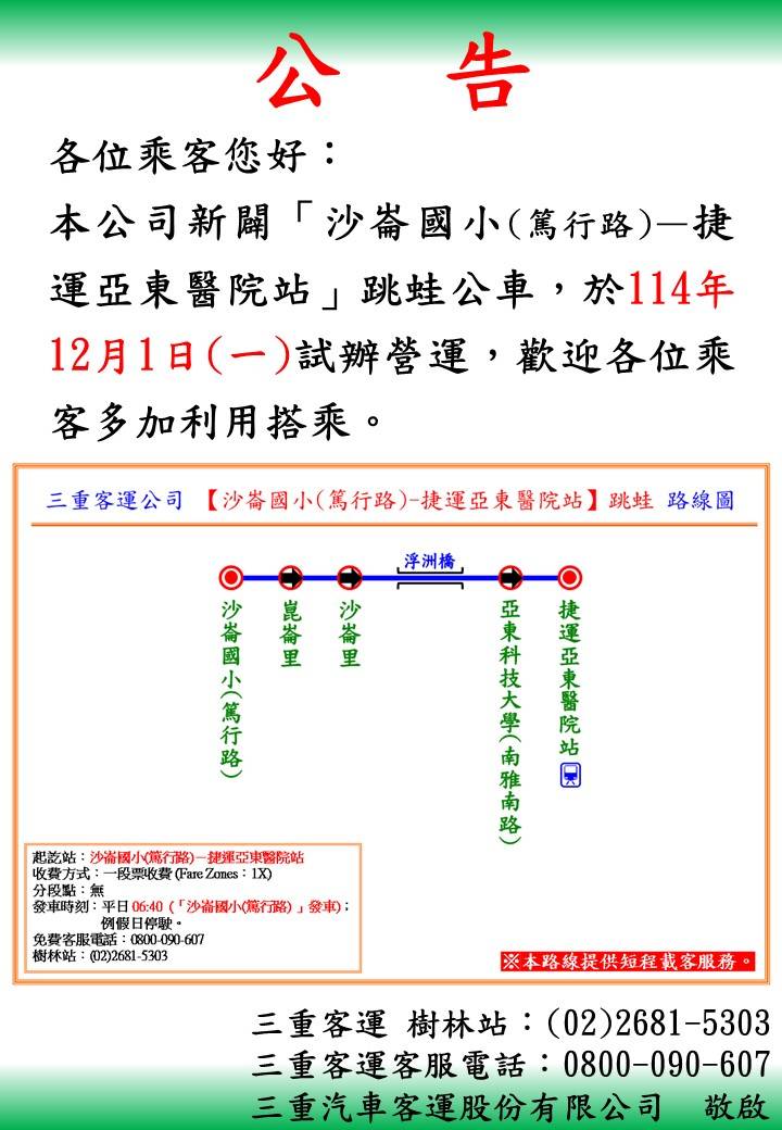 標題[時刻] 251201 重客 沙崙國小-MRT亞東醫院 跳蛙公車