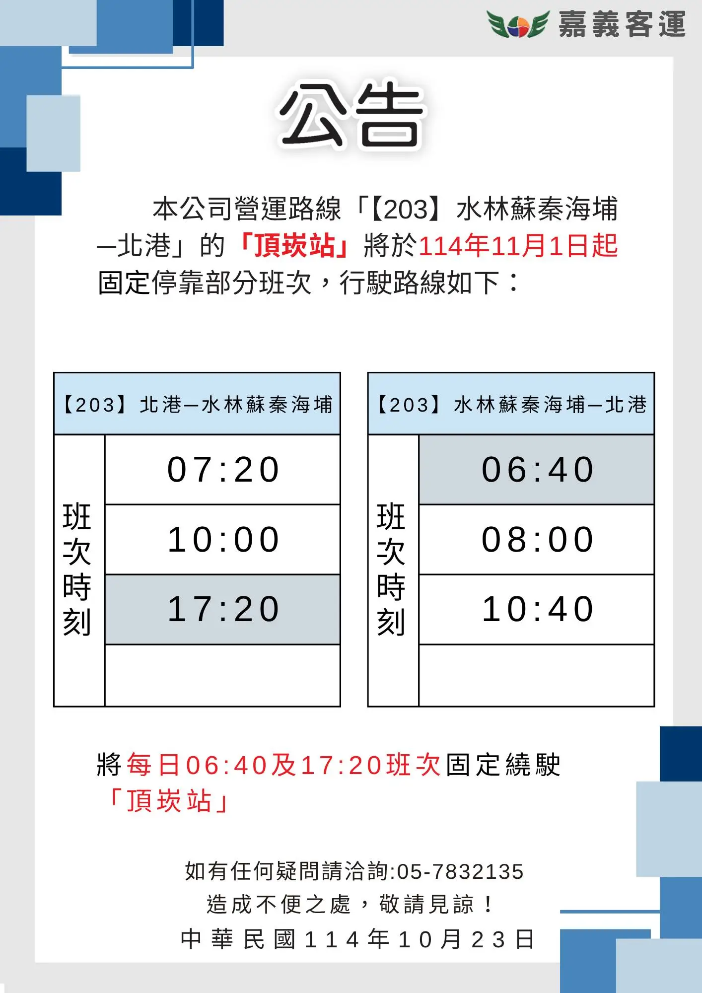 ■ 預約站位:頂崁(非固定繞駛班次)、海浦活動中心,僅預約才停靠