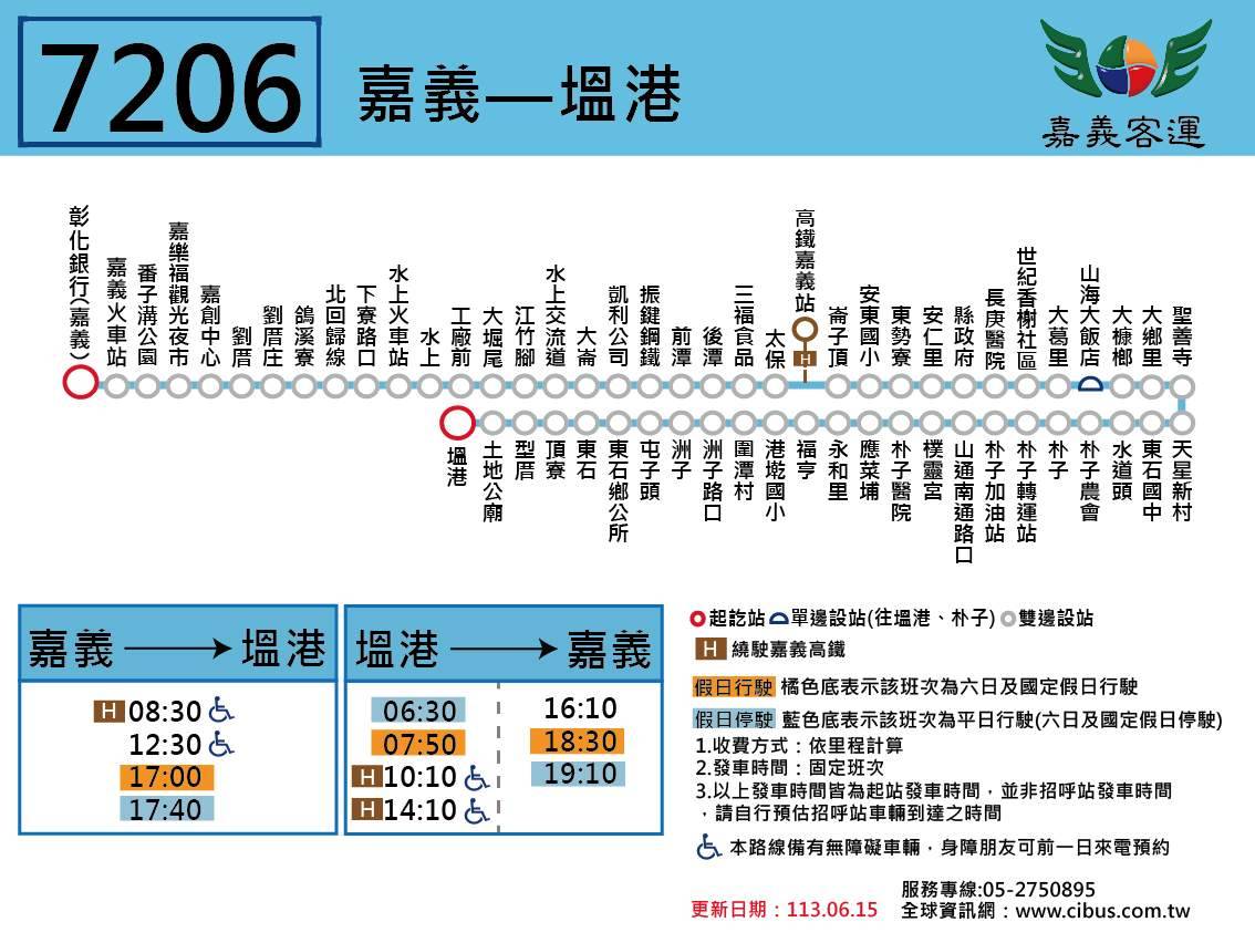 7206 調整路線,新增 7206I 塭港-嘉義[經永慶高中] 支線