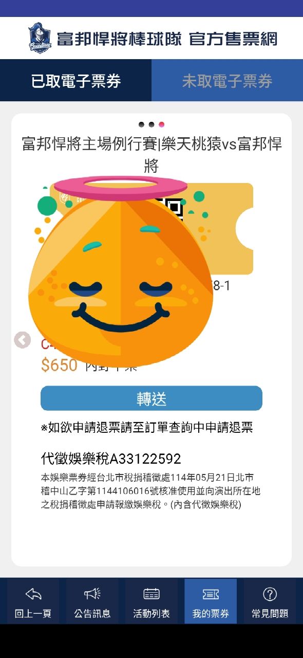 標題[徵票] 4/4樂天桃猿VS富邦悍將內野熱區三連號