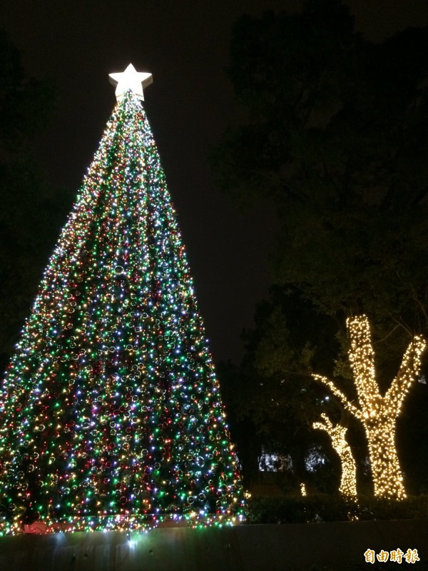 今年的耶誕樹高約8公尺,使用LED燈飾超過1萬顆,校園共由10萬顆LED燈飾布置,從每天