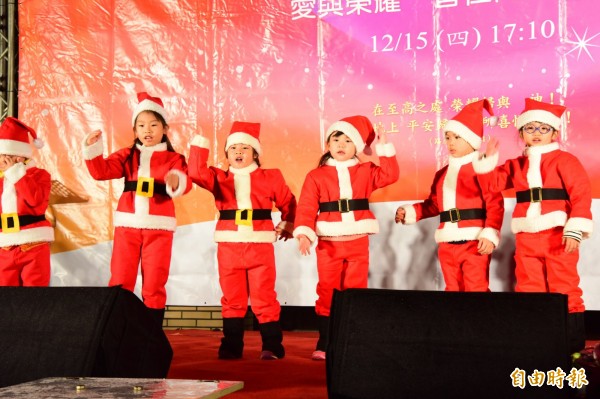 中原附設幼兒園的小朋友傳唱詩歌福音。(記者李容萍攝)