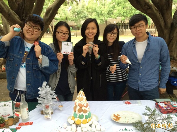 中原設計學系16組大二學生將色彩元素與食物點心,裝飾成美麗的耶誕樹、耶誕花圈等造