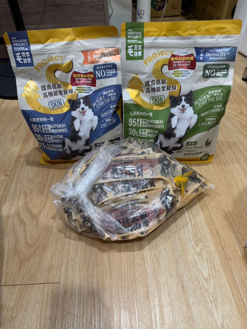 1496F:→ swear5252: 狗狗毛食事計畫飼料1.5公斤兩袋+里肌肉片41片 全新未 01/24 02:16