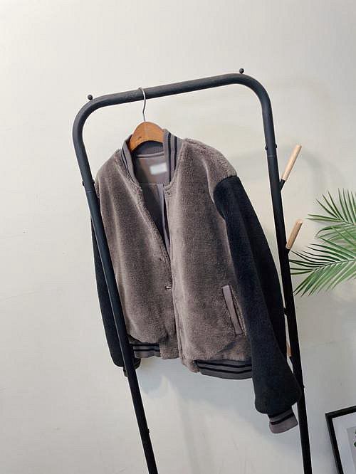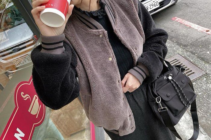 標題[全新/全國] 女-正韓 皮革拼接熊寶寶絨棒球外套