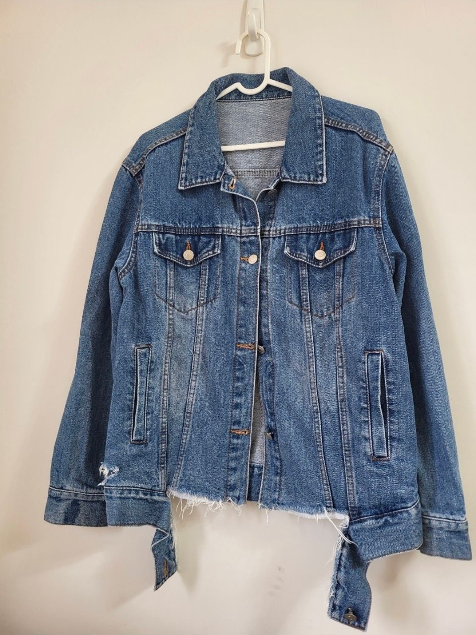 2.牛仔外套,少穿無髒污毛球衣況佳,適合尺寸M~L號,衣服設計破舊感(並非使用後造