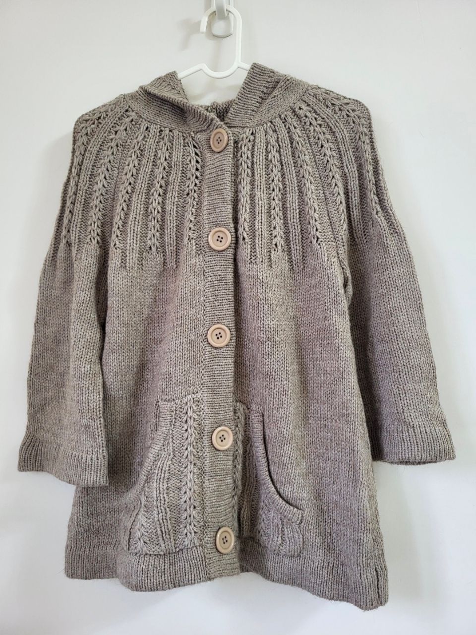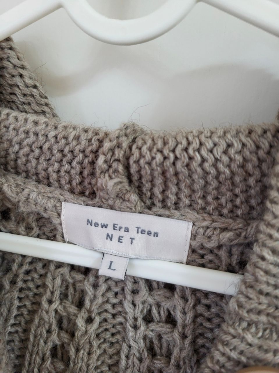 5.NET保暖針織咖啡色長版外套,NET青少年尺碼L,材質羊毛30%,有些縮水,袖子約為8