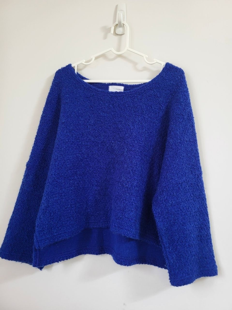 3.藍色大U領短版毛衣,無髒污,適合M~L號