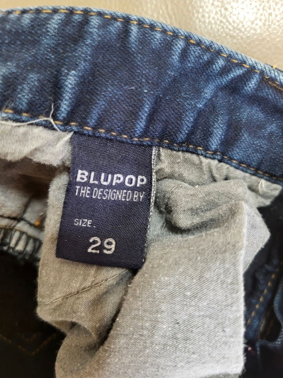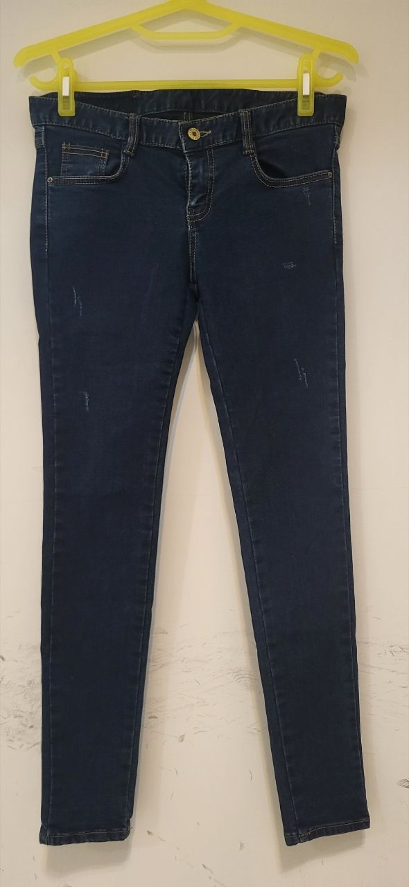 1.深藍色刷破顯瘦貼腿牛仔褲,尺寸:29(腰圍平量39cm)