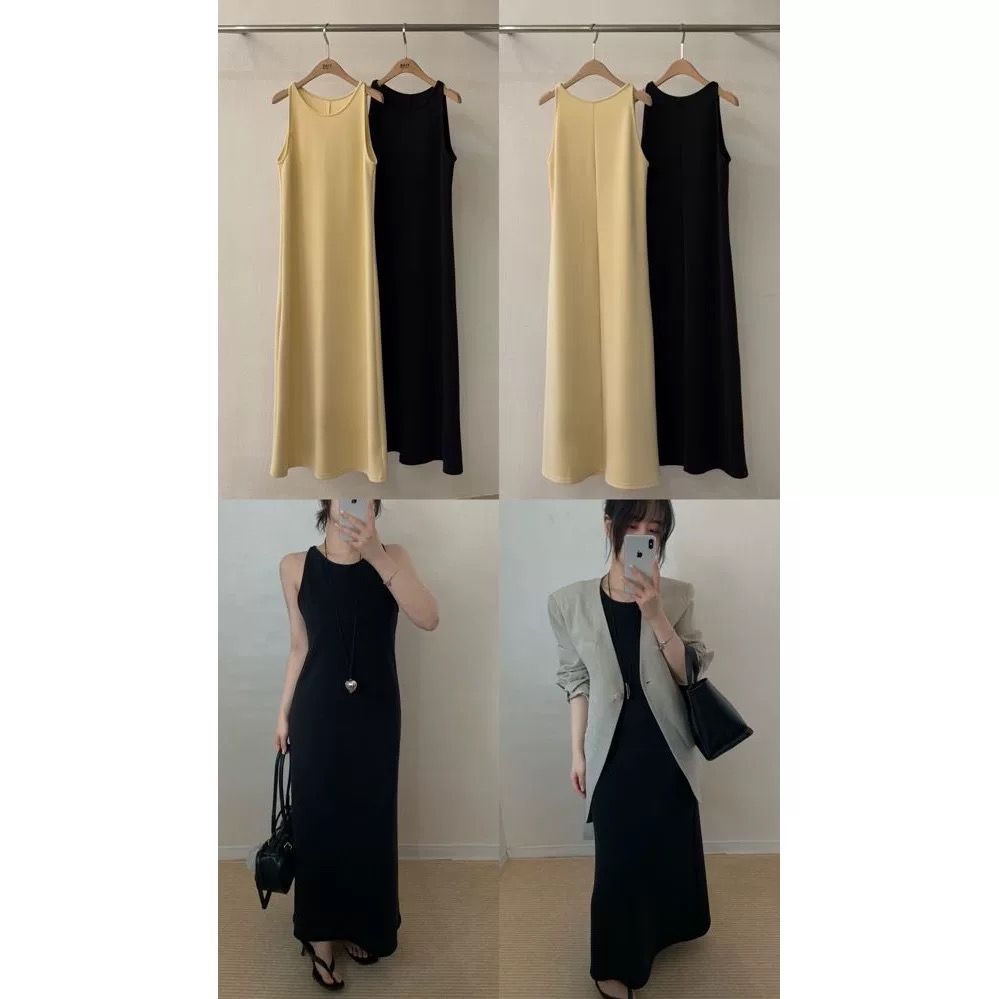 Room21 正韓24/7 空氣感不皺中線長洋裝 黃色