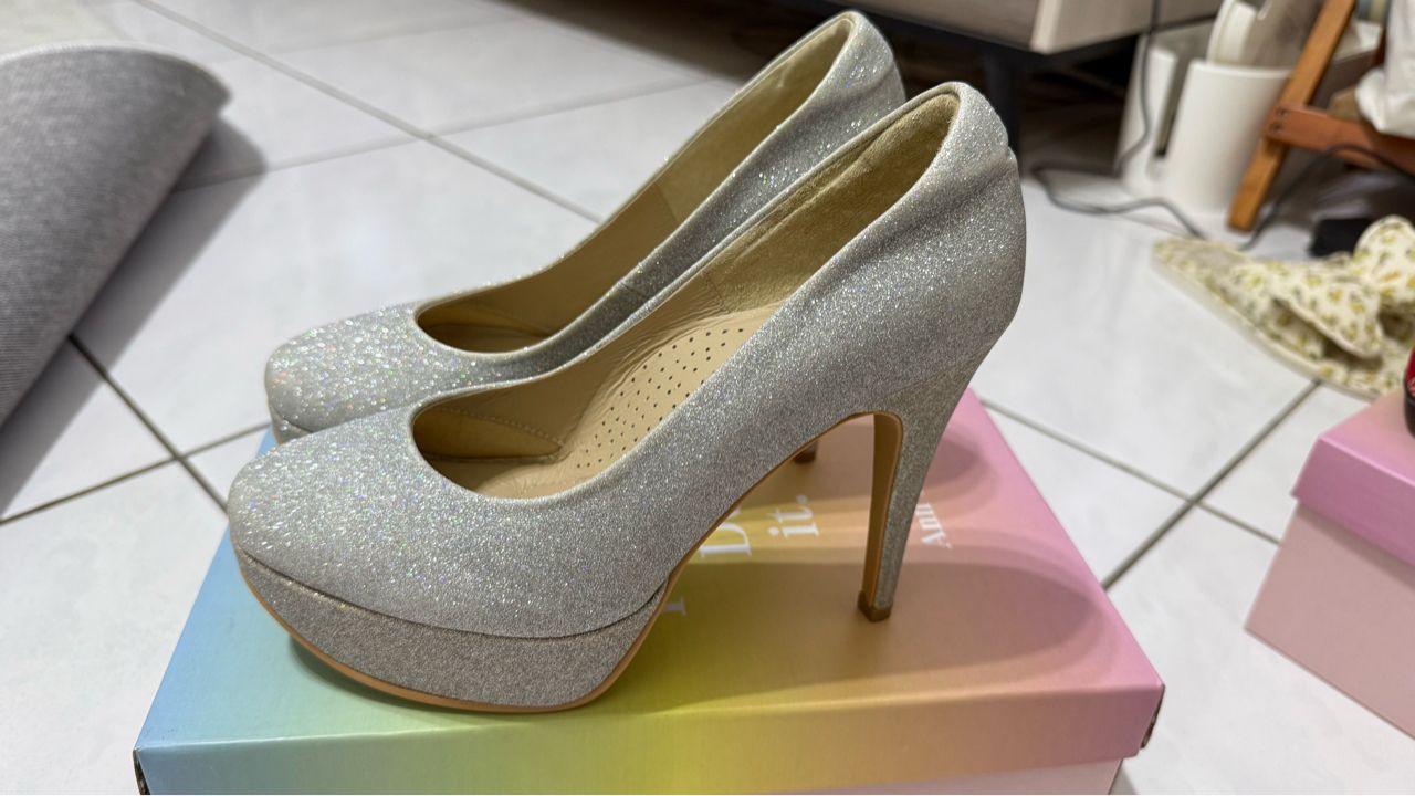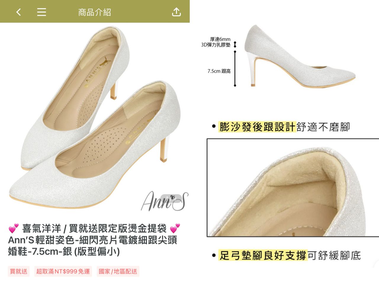 ❷ Ann‘s細閃亮片細跟尖頭婚鞋7.5cm