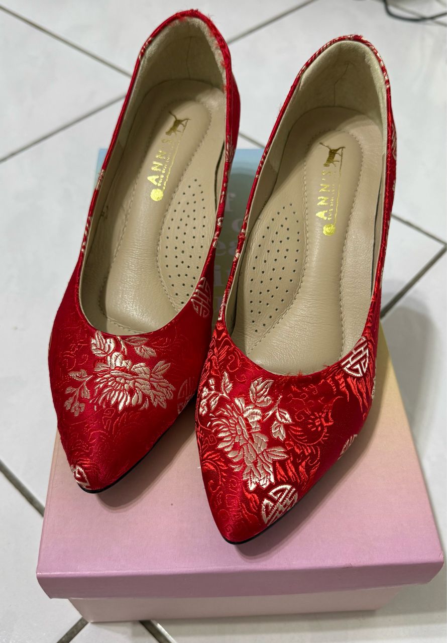❸ Ann’s 刺繡中式粗跟婚鞋繡花鞋6cm