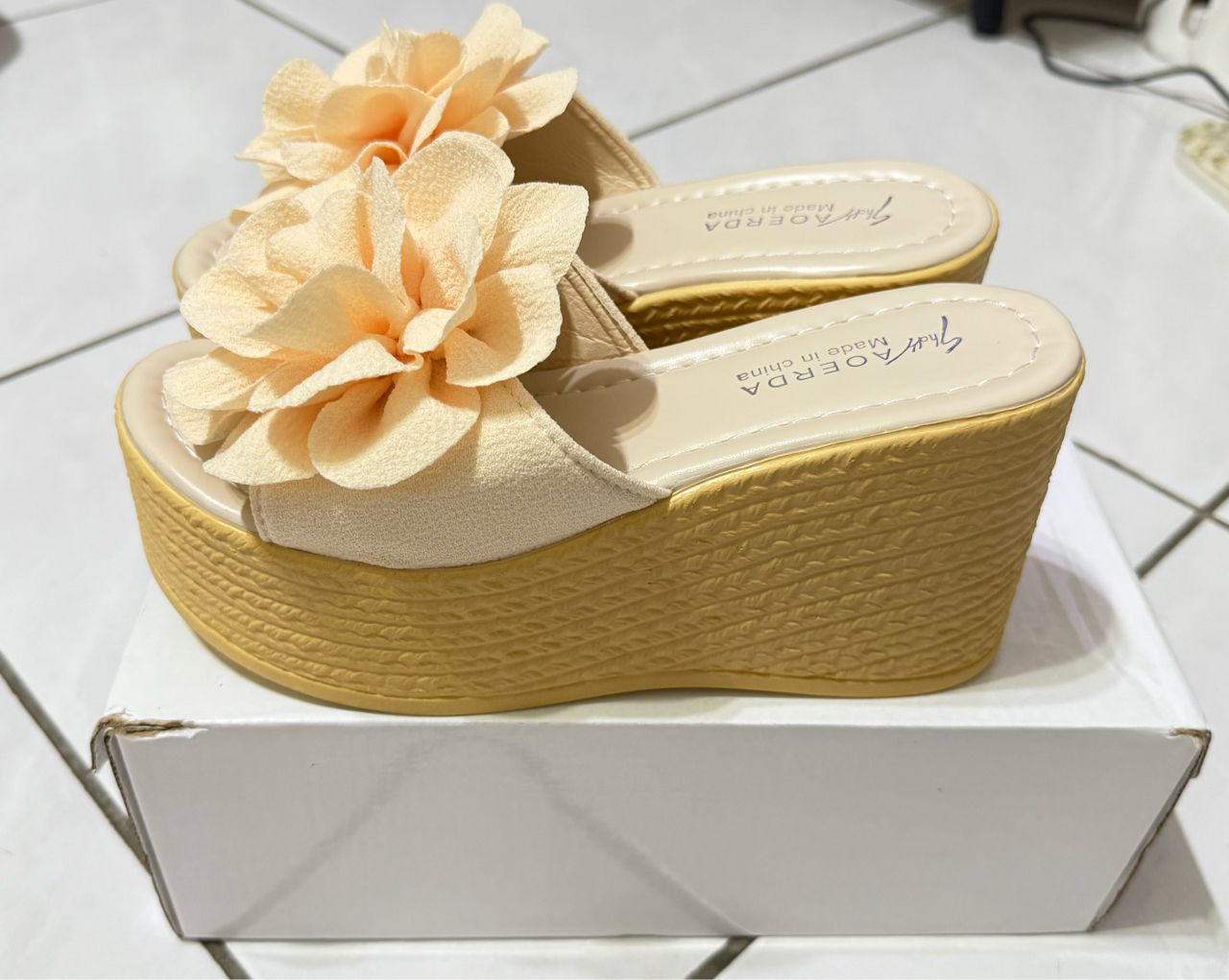 ❹ 花朵厚底防水台拖鞋6cm