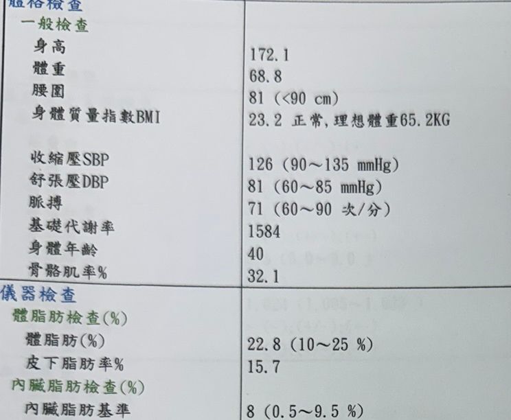 下面這是去年8月初體檢報告