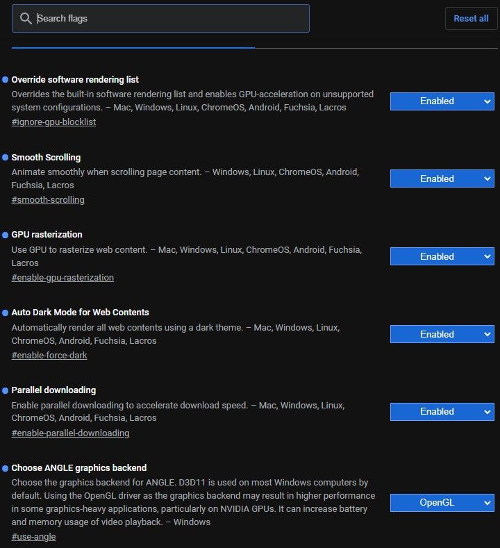 有在flags啟用六項設定,且硬體加速有開啟,題外話問一下「記憶體節省」這選項建議