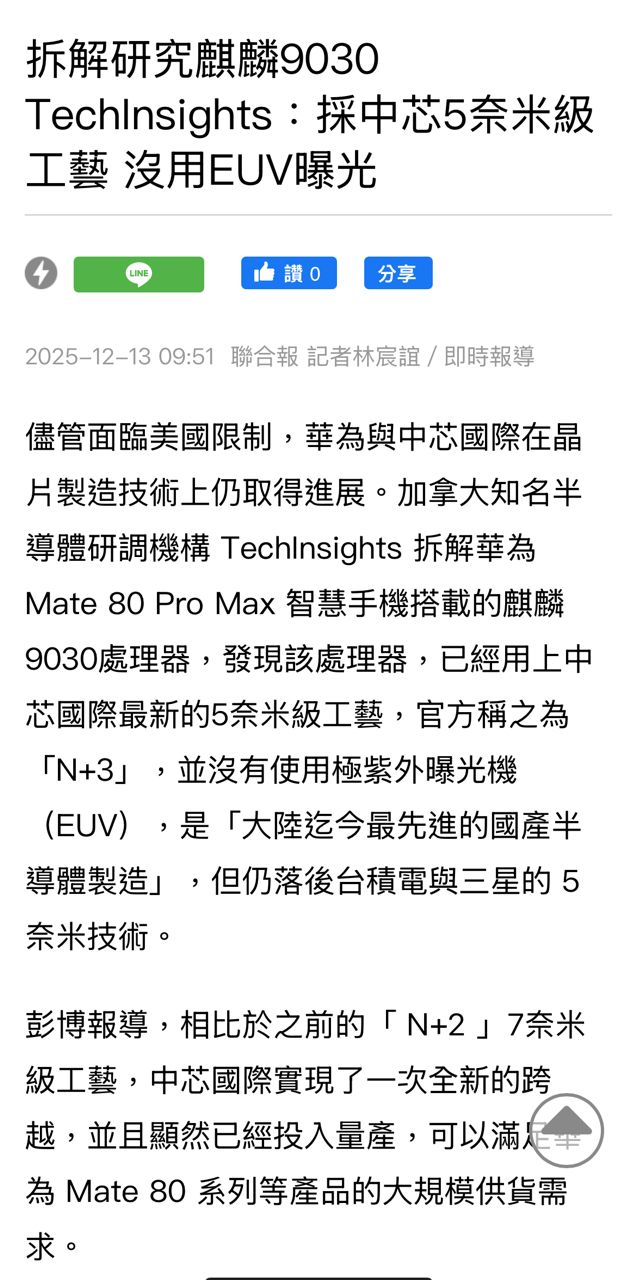就是中國不是利用EUV而是利用DUV多重曝光技術來做N+3工藝,所以效能跟良率都不如台