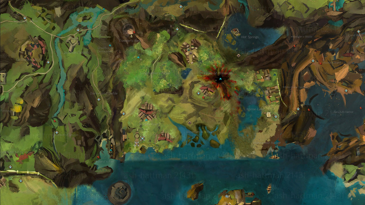 此地圖有多個部分組成:森林、Quaggan村莊、湖泊、Scarlet喚醒的遠古巨龍Primordus