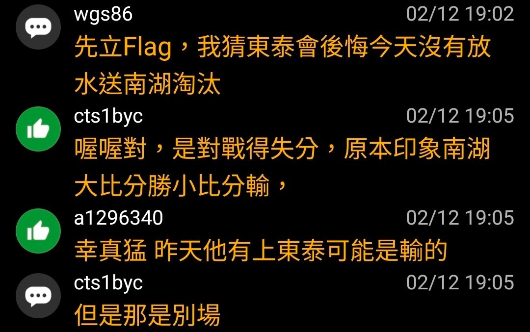 42F:推 attom: 之前不是有說 準決賽東泰如果輸松山 南湖就掰了 堅持完勝 03/21 14:24