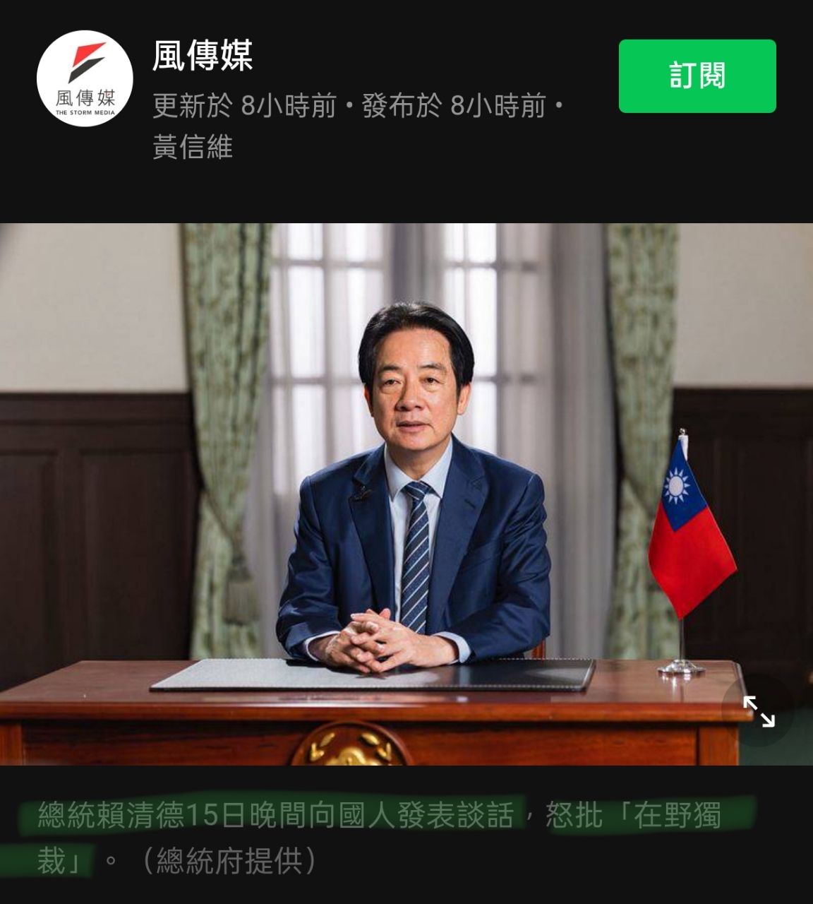 賴清德大總統痛批在野黨獨裁