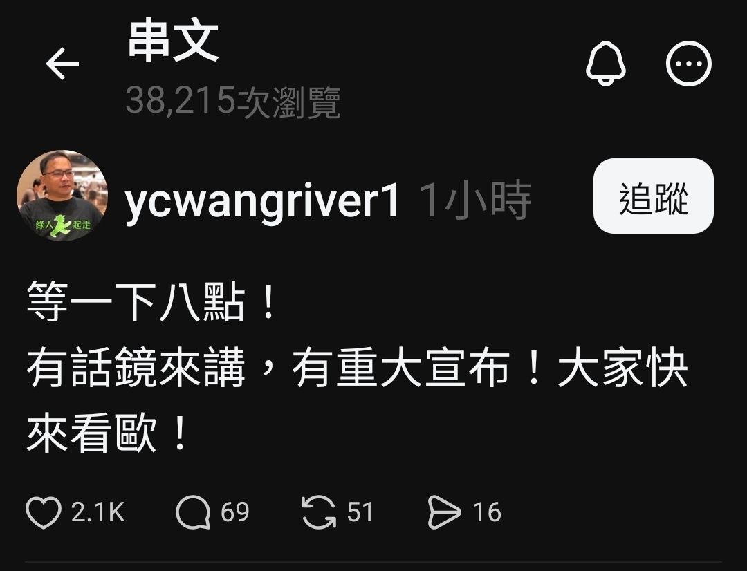 標題[討論] 震撼彈/ 王義川重大宣布!