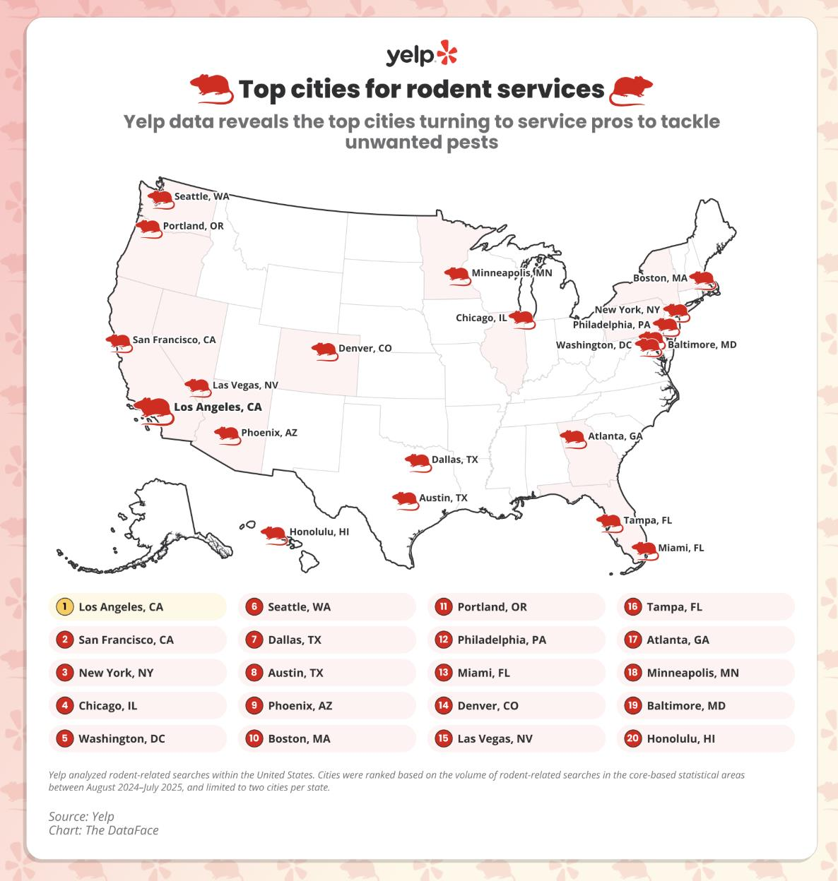 報告指出,洛杉磯成為全美排名第一的鼠患熱點(#1 rodent hotspot),在Yelp上搜尋