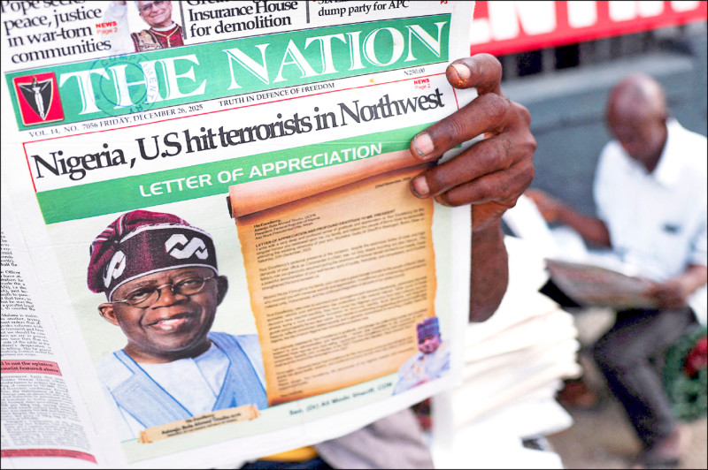 奈及利亞國家報26日以頭版報導,美奈兩國合作打擊奈國西北部的恐怖分子。(路透)