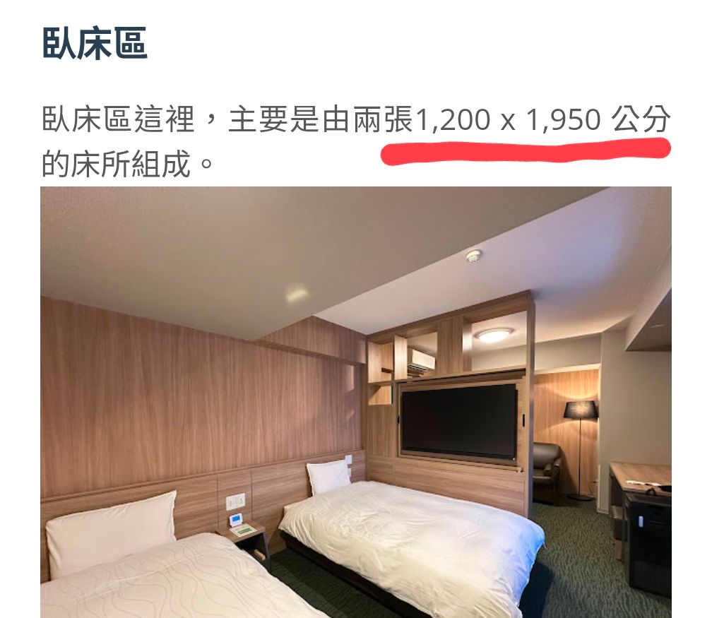 臥床區這裡,主要是由兩張1,200 x 1,950 公分的床所組成。