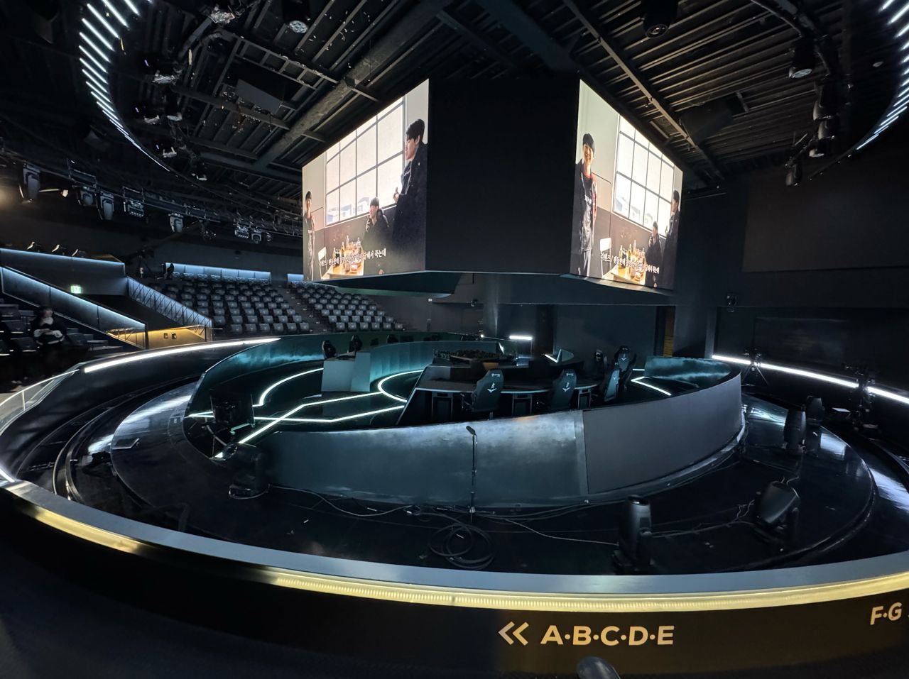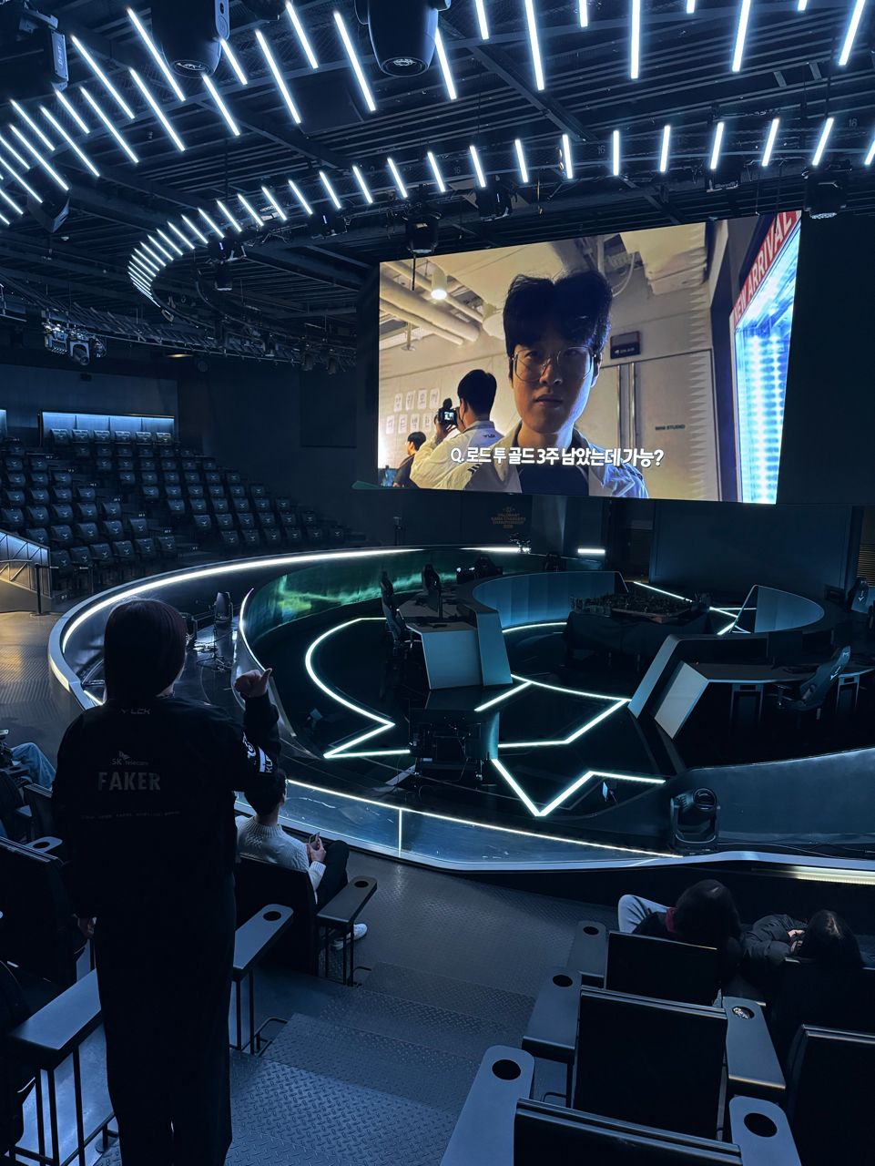 工作人員直接引導我進去平常比賽的場地(好像也可以直接去看照片?) 隨便選了一個座位,原來這個就是看比賽的視角嗎QQ,場地真的不大難怪票很難搶,趁現 在空空的時候體驗一下看比賽的感覺XD在比賽直播看到的畫面呈現在眼前很不真實,希望 明年可以來現場看比賽!