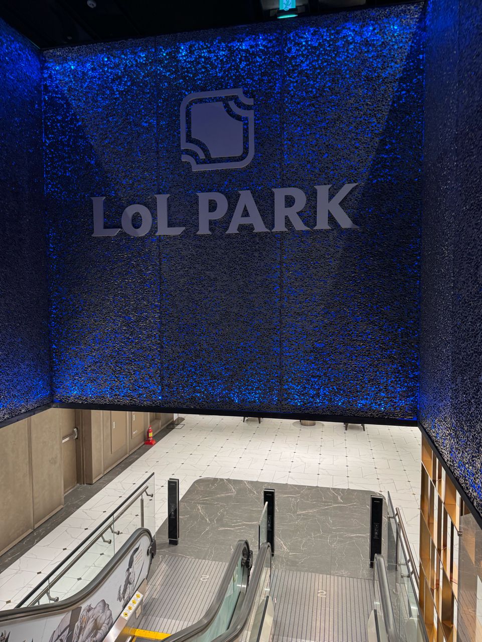 一大面的選手牆 落地放好行李抵達LOL PARK已經晚上六點半,也許是因為比較晚了人不多,反而可以很輕 鬆的逛。 一開始入場工作人員會給你一個壓克力卡夾 加選一個隊伍的透卡,入場票卷是隨機給,今天拿到鹼基的~(入場沒有任何登記跟手章 之類的)