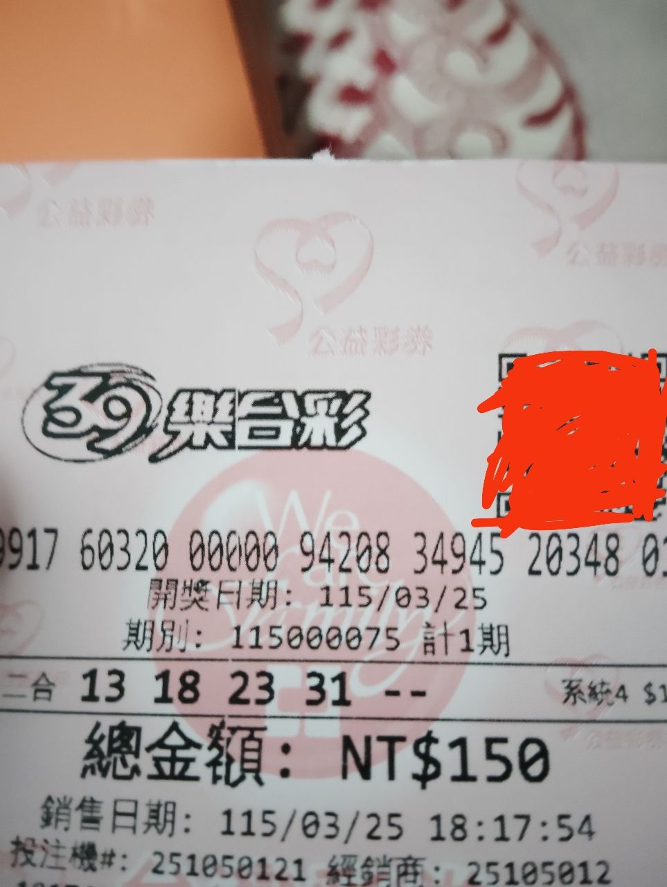 ※ 文章網址: https://webptt.com/m.aspx?n=bbs/Lottery/M.1774431904.A.239.html
