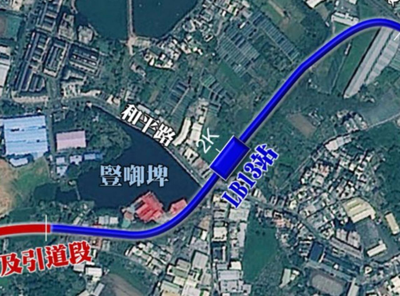 將採高架跨越國道2號大湳交流道於八德區和強路口設置LB12a高架車站,續繞經豎啣埤東