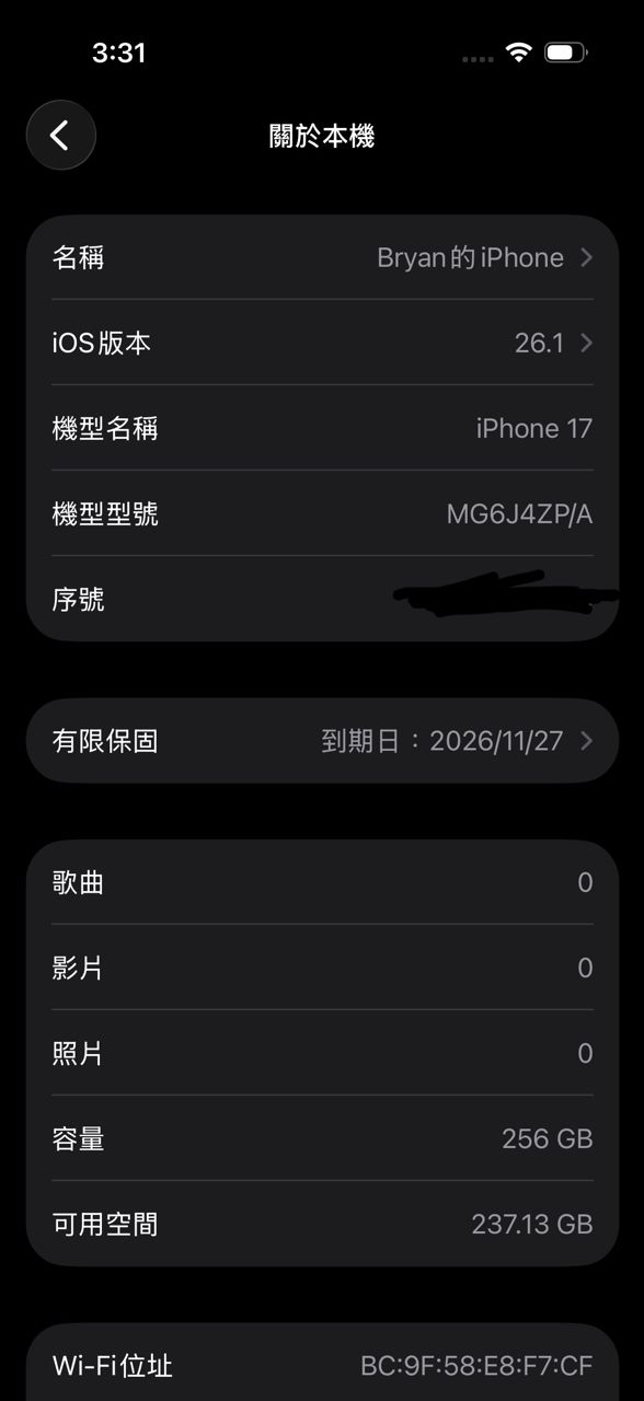 [型號] 1.iPhone Air 2.iPhone 17 3.Airpods Pro 3 [規格] 1.256G 太空黑色 2.256G 黑色 3.MagSafe 充電盒 (USB-C) [保固] 1.2026/9/19 2.2026/11/27 3.2026/11/20 [盒裝配件] 1.原廠盒裝 附原廠充電線、iPhone Air Battery、贈MOFT手機殼 2.原廠盒裝 附原廠充電線 贈犀牛盾手機殼、bitplay手機殼 3.原廠盒裝 [售價] 1.$30000 2.$25000 3.$6000 [交易方式/地點]台中清水面交 [連絡方式]站內信 [商品照/補充說明] 1.健康度100%