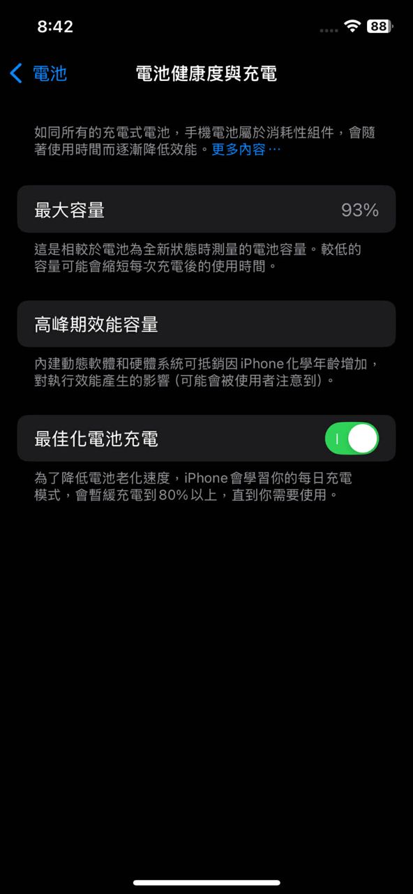 有更換過原廠電池,目前健康度93%