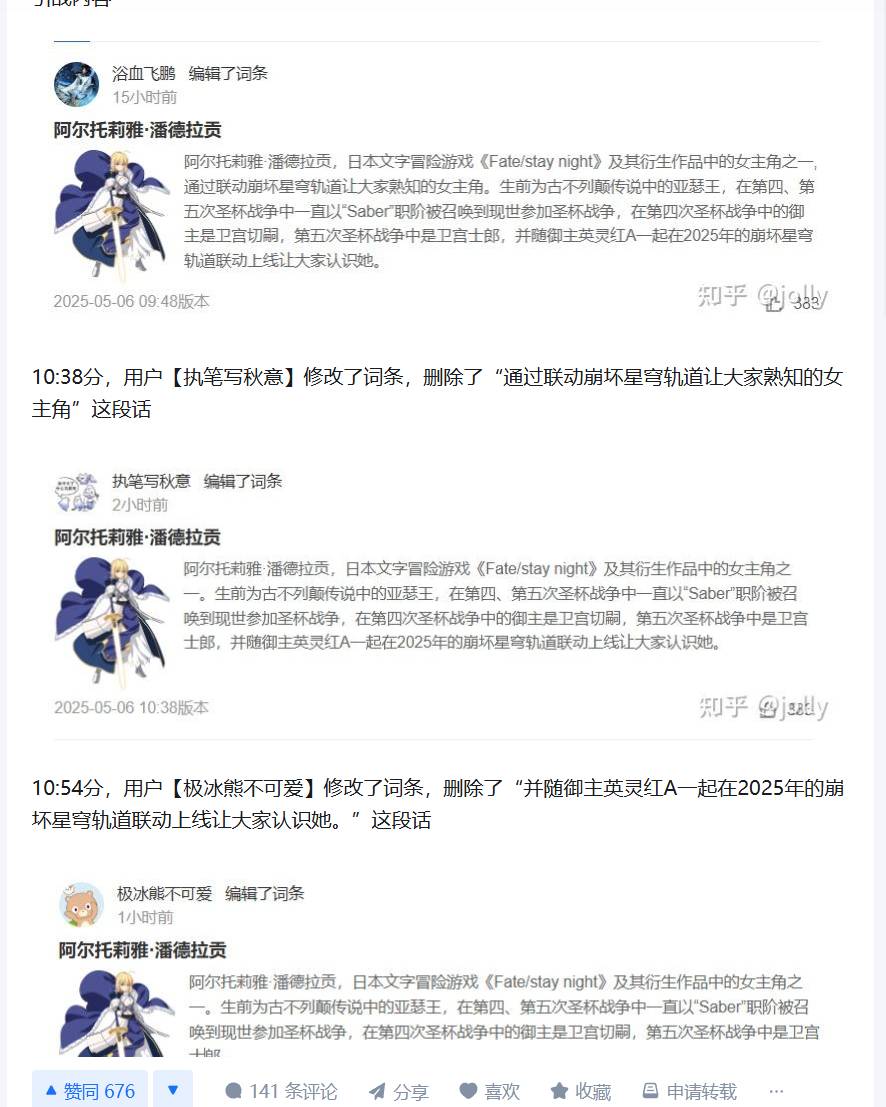 中國鳴潮玩家惡意修改fate百科詞條抹黑鐵道玩家