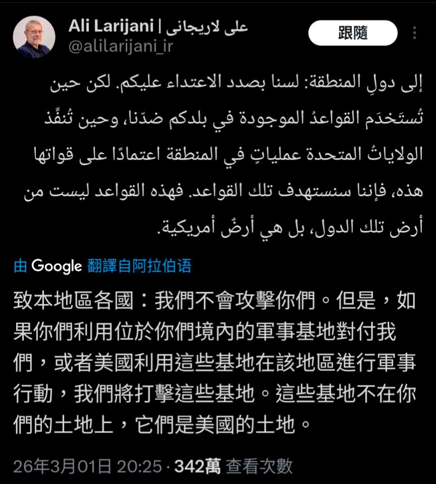 10F:推 aweara : 伊朗 很認真 打卡達跟阿聯美軍 02/28 20:12