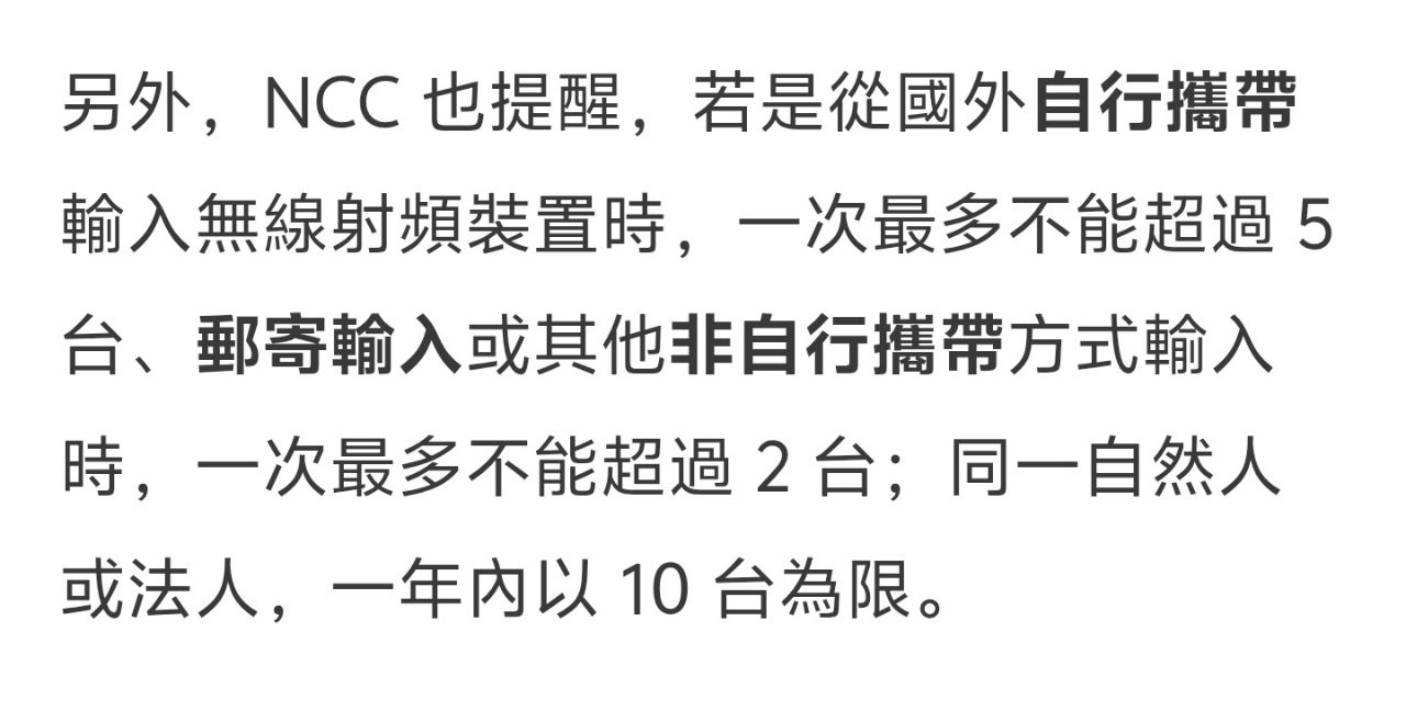 9F:推 a22663564 : 的確有人崩潰,自用數量在2台以下不算走私,NCC早 02/05 22:17