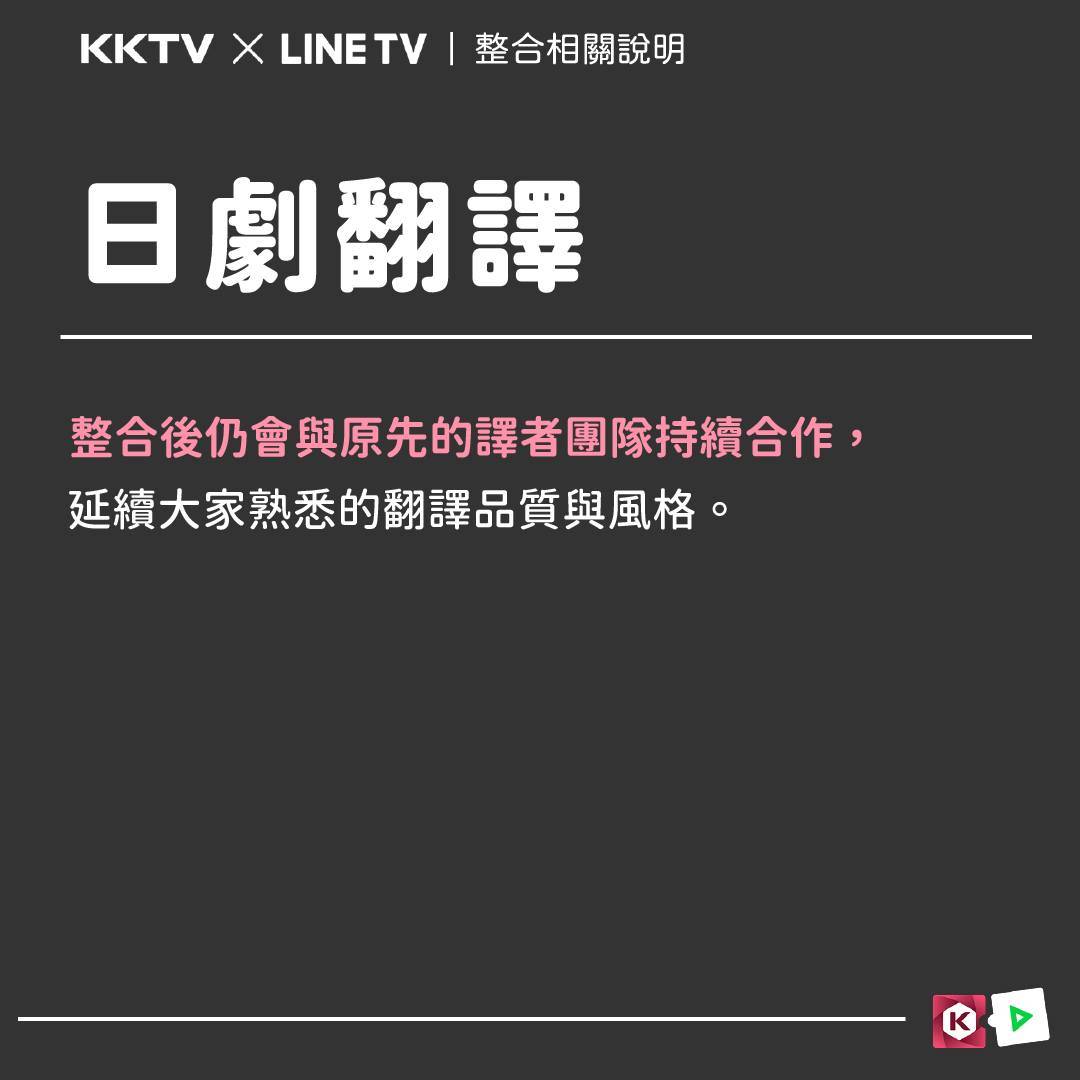 現有 KKTV 的日劇、動畫片庫會移轉至 LINE TV,整合後會持續加強日本內容的投資