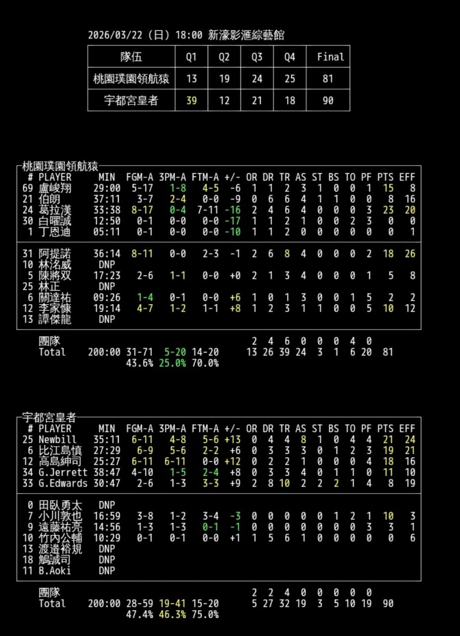 標題Fw: [BOX ] 東超 2025-26 冠軍賽 領航猿 81:90 皇者