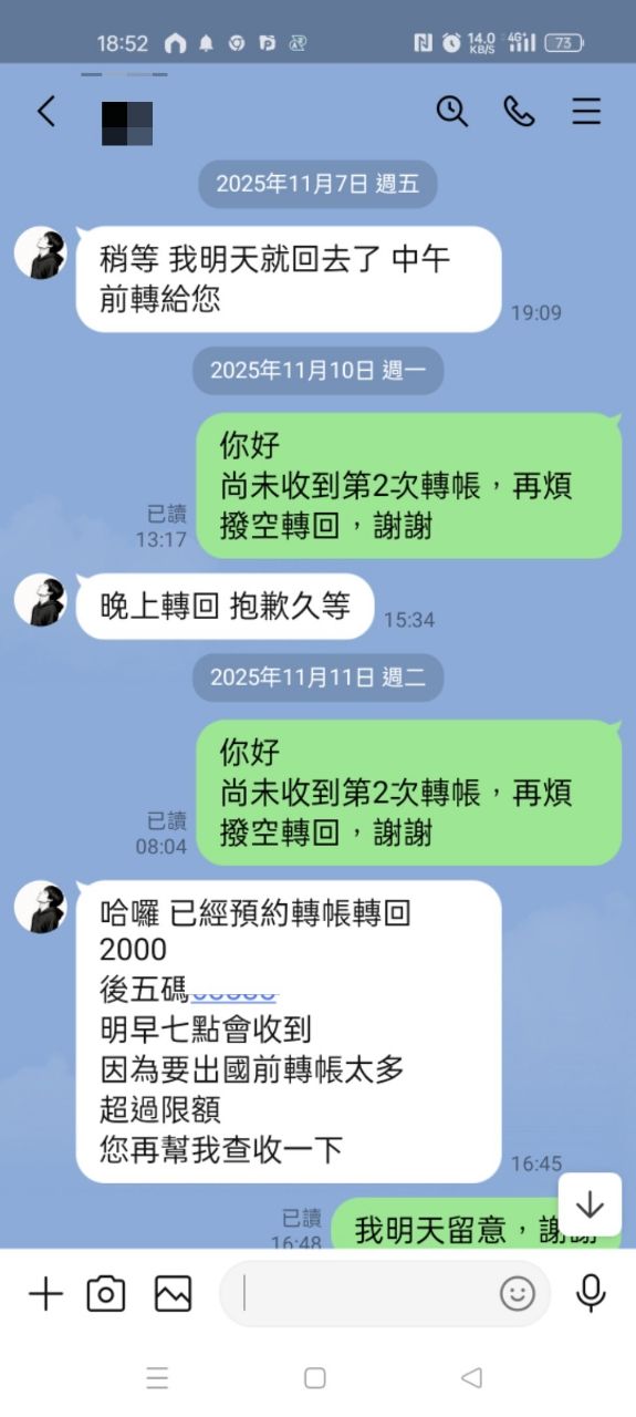 受害人但又不能把帳號拿出來提出質疑,因為嫌疑人沒有消失找不到人,只是拖延