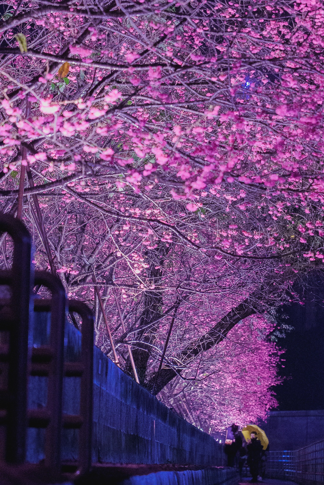 作品敘述:夜晚細雨中的櫻花林,台北也有不輸日本的賞櫻景點。
