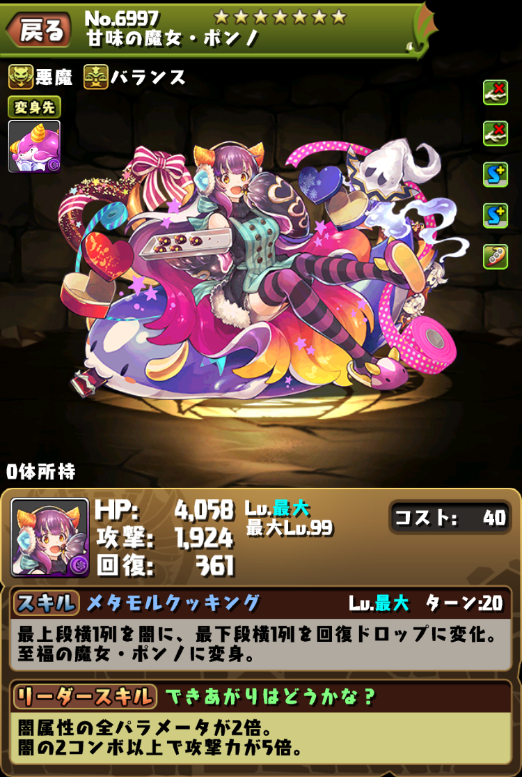 隊長:暗屬攻血回2倍、轉珠+2秒,暗2串以上減傷(25%或35%)/攻10倍/+2C