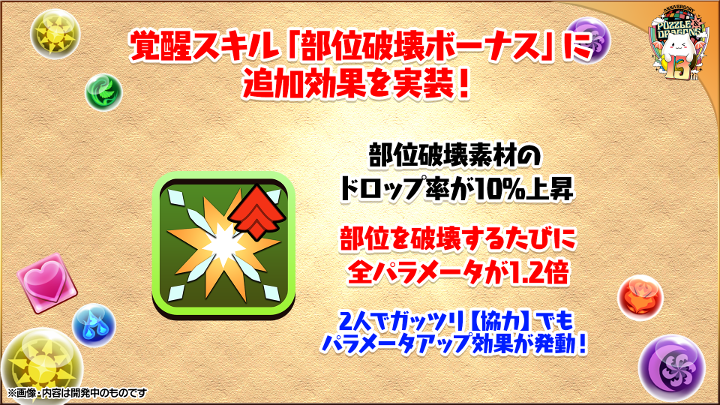 除了原有的提升10%部位破壞掉落率之外,每破壞一個部位後