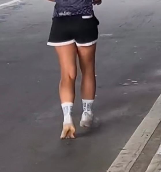 今天訓練的時候朋友幫錄影,發現左腳下腳的角度是外八,雖然跑起來並不會覺得不適,