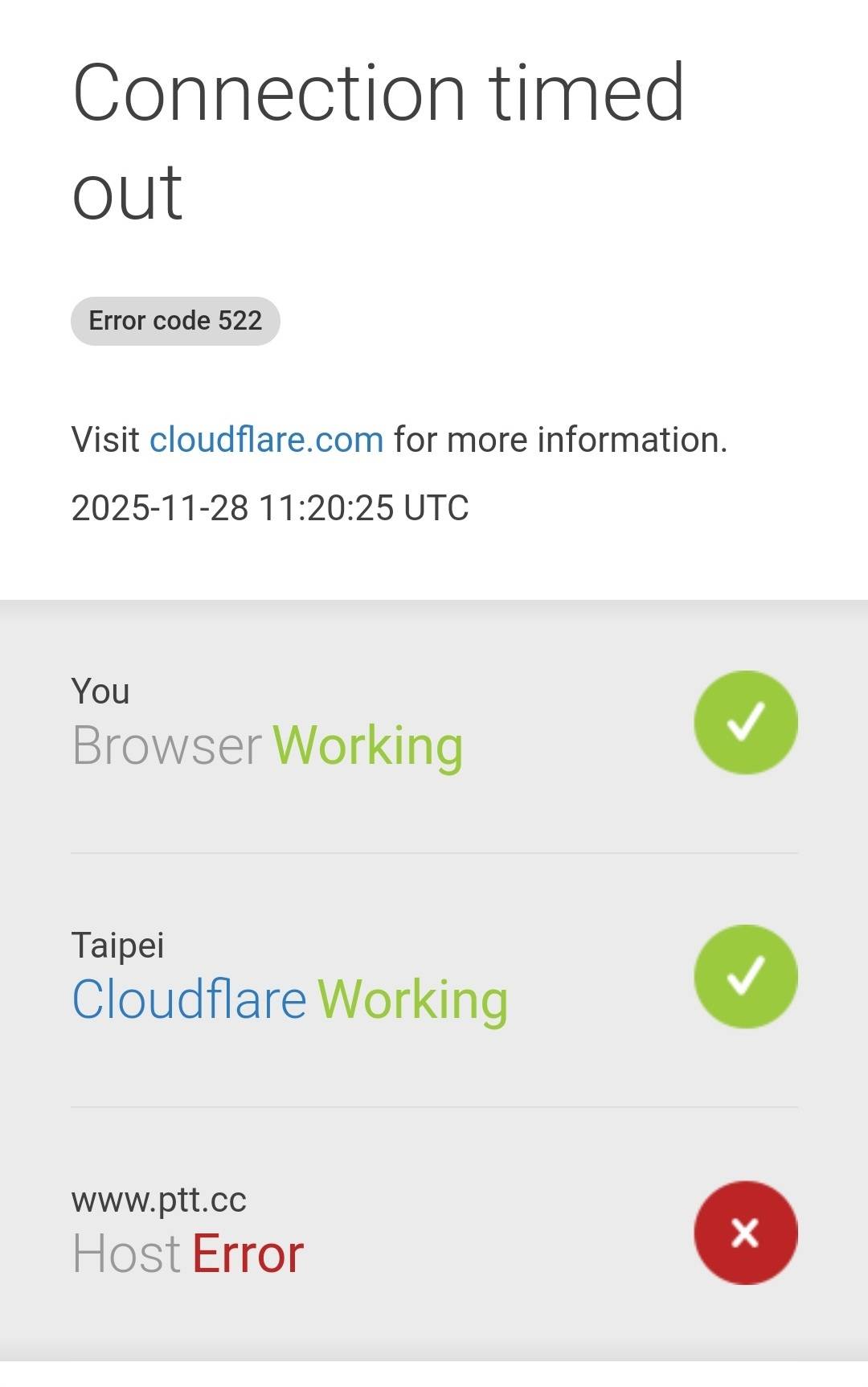 787F:推 jyhfang: 網頁版 五點多 又開始出現 HTTP 522122.116.131.224 11/11 05:57