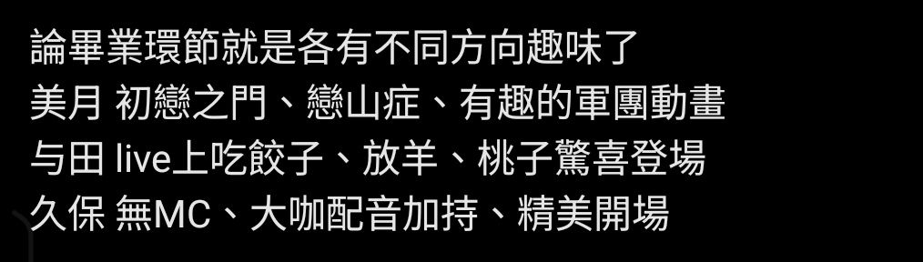 17F:→ YDSK: 要不然卒業成員再差都有Live 01/30 20:26