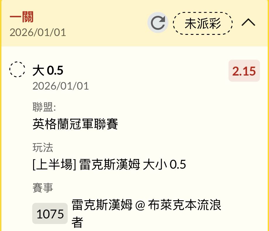 ※ 文章網址: https://webptt.com/m.aspx?n=bbs/SportLottery/M.1767269111.A.77E.html