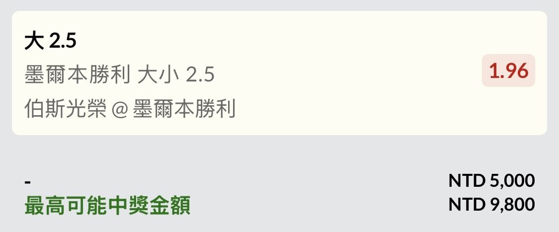 328F:推 kenji0108: 開賽五分鐘買11.5角小還能過..感謝不 112.104.26.171 01/02 18:35